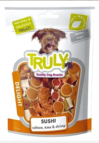 Apresentamos o Petisco Truly Delight Sushi de Salmão, Atum e Camarão, uma deliciosa e nutritiva opção para cães adultos. Com um peso líquido de 90g, este petisco é 100% natural, garantindo que seu melhor amigo receba apenas o melhor. Com uma composição rica, que inclui frango (51%), atum (4,5%), salmão (4,5%) e camarão (2%), proporciona um sabor irresistível que vai agradar até os paladares mais exigentes. A textura seca do produto facilita a mastigação, tornando-o ideal para o dia a dia. A marca Truly é reconhecida pela qualidade de seus produtos, e a linha Delight não é exceção. Ofereça ao seu cachorro um momento de prazer e saúde com este petisco saboroso e nutritivo, que combina os melhores ingredientes para uma experiência única.